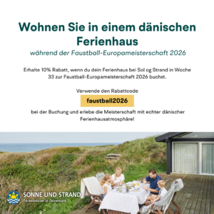Verwende den Rabattcode: Faustball2026 bei der Buchung und erlebe die Meisterschaft mit echter dänischer Ferienhausatmosphäre!